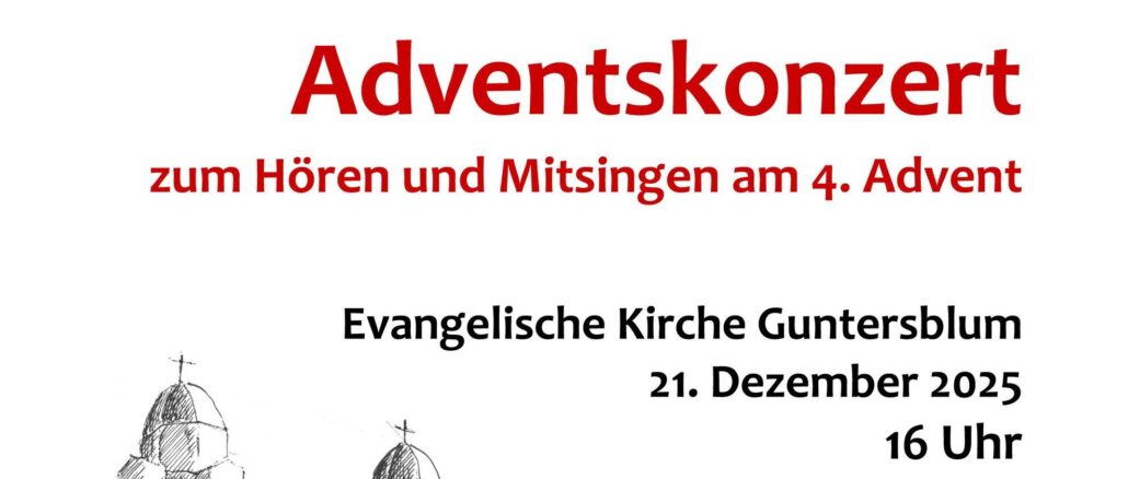 16:00 Uhr der Kirchenchor lädt zum Adventskonzert ein. Im Anschluss an das Konzert: Einladung zu Glühwein und Gebäck vor der Kirche