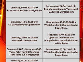 Das Konzert findet am Samstag, den 13.12. in der ev. Kirche Gau-Odernheim und am Sonntag, den 14.12. in der ev. Kirche Guntersblum statt. Beginn ist jeweils um 18 Uhr, Einlass ab 17.30 Uhr.Der Eintritt ist […]